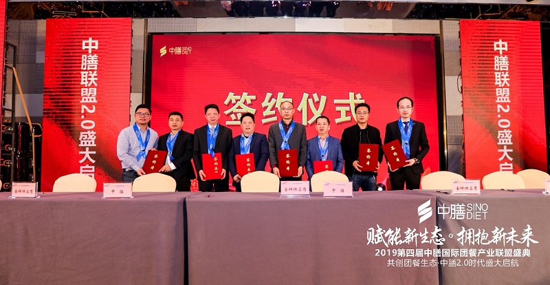 在頒獎晚宴上,正大集團、益海嘉里集團、獨鳳軒集團、良之隆集團、鄭州千味央廚食品股份有限公司、廣東三濤食品有限公司、杭州九陽豆業(yè)有限公司、廣州市洗碗哥環(huán)??萍加邢薰?、廣州市大唐智訊電子技術(shù)有限公司、廣州八味緣供應鏈管理有限公司與中膳聯(lián)盟簽訂合作協(xié)議,一系列的簽約展示聯(lián)盟在創(chuàng)新發(fā)展上的高瞻遠矚,既有戰(zhàn)略投資,也有優(yōu)質(zhì)供應商。這將為聯(lián)盟的發(fā)展壯大力量。